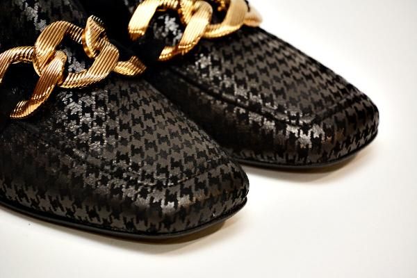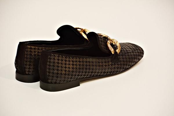 - Suede leather with a pied-de-poule print